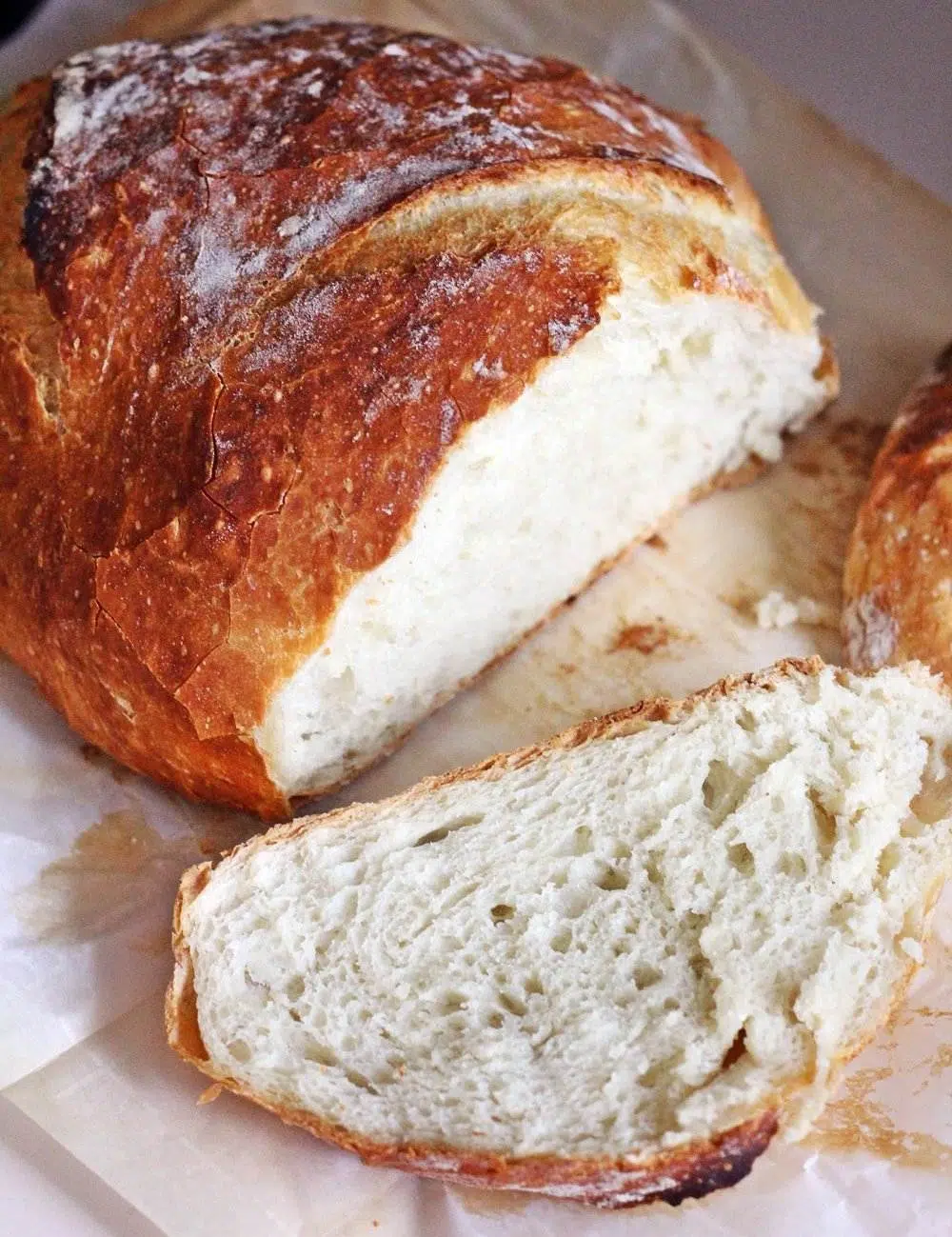 Oh, I used my 5 qt crockpot insert with foil on top to bake the bread in. I did not have parchment paper so improvised with a silicone cookie baking liner. Someone gave it to me so can't be sure if the temp was too high for it. It smelled a little plastic-ky while baking, but did not melt and the bread was fine.